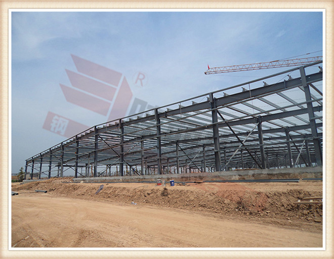 項目簡介:該工程長135米、寬72米、高4.95米、建筑面積9720平方米。門式剛架結構、圍護采用現場復合的彩鋼壓型板。