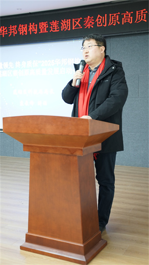 蓮湖區(qū)科技局局長袁展鋒在講話中指出,華邦鋼構(gòu)作為我省鋼結(jié)構(gòu)行業(yè)的標桿企業(yè),始終堅持科技創(chuàng)新,注重產(chǎn)品質(zhì)量,為蓮湖區(qū)經(jīng)濟社會發(fā)展做出了積極貢獻。蓮湖區(qū)作為西安市中心城區(qū),始終把科技創(chuàng)新作為推動高質(zhì)量發(fā)展的核心動力。近年來,蓮湖區(qū)大力實施創(chuàng)新驅(qū)動發(fā)展戰(zhàn)略,不斷優(yōu)化創(chuàng)新生態(tài),集聚創(chuàng)新資源,培育創(chuàng)新主體,全區(qū)科技創(chuàng)新能力顯著提升。袁局長希望華邦鋼構(gòu)以此次啟動會為契機,堅持創(chuàng)新驅(qū)動,加大研發(fā)投入,加強核心技術(shù)攻關(guān),不斷提升產(chǎn)品質(zhì)量和核心競爭力,努力打造國內(nèi)一流、國際知名的鋼結(jié)構(gòu)品牌。
