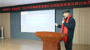 省金屬學(xué)會鋼構(gòu)專委會主任委員、華邦鋼構(gòu)總經(jīng)理行礎(chǔ)致辭,他首先代表鋼構(gòu)專委會及華邦鋼構(gòu)全體員工,向蒞臨現(xiàn)場的各位嘉賓、各位業(yè)界上下游同仁致以最熱烈的歡迎和最誠摯的感謝!他提到, 2月7日,西安市委市政府召開了推動經(jīng)開區(qū)2025年高質(zhì)量發(fā)展工作專題會議,這與今天的啟動會非常契合,使我們更能堅定信心、鼓足干勁,為全市高質(zhì)量發(fā)展貢獻自己的力量。他表示,自2003年成立以來,華邦鋼構(gòu)始終秉持“質(zhì)量領(lǐng)先,終身質(zhì)保”的核心理念,深耕鋼結(jié)構(gòu)領(lǐng)域,累計完成超百項標志性工程。2025年是華邦鋼構(gòu)深化戰(zhàn)略合作、推動技術(shù)升級的關(guān)鍵之年,公司將以“質(zhì)量創(chuàng)品牌,安全靠預(yù)防”為方針,聚焦技術(shù)升級、服務(wù)深化、文化凝聚三大方向,推動鋼結(jié)構(gòu)智能化技術(shù)應(yīng)用,優(yōu)化“終身質(zhì)保”服務(wù)體系,踐行“上善若水 天地人和”的企業(yè)文化,打造專業(yè)、高效、擔(dān)當?shù)纳舷掠我惑w化服務(wù)平臺。同時,作為陜西省金屬學(xué)會鋼結(jié)構(gòu)專委會主任單位,華邦將持續(xù)聯(lián)合智庫專家,推動裝配式建筑、光伏一體化等九大領(lǐng)域的創(chuàng)新應(yīng)用,還將參與發(fā)起既有建筑改建之檢測鑒定設(shè)計施工一站式聯(lián)盟,助力行業(yè)可持續(xù)發(fā)展。