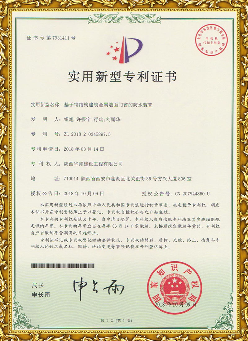 鋼構專利證書